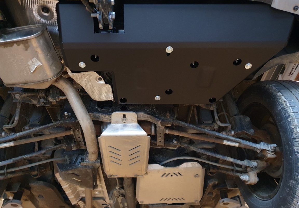 | Ieder voertuig heeft fabrieksgemaakte schroefgaten voor de carterbeschermplaat, voor een gemakkelijke montage. |