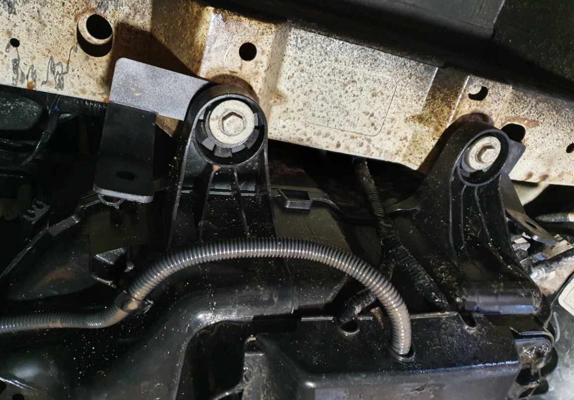 | Het monteren van de carterbeschermplaat eist geen wijzigingen aan de voertuigstructuur. |