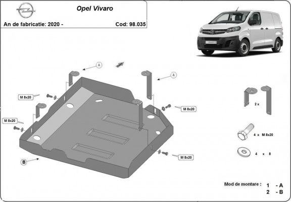 Voor de bescherming van: brandstoftank AdBlue De motor beschermplaat is nieuw en past perfect bij alle versies van Opel Vivaro geproduceerd tussen 2020 en 2026. Gemaakt van 2 mm dikke Staalplaat. Schroeven, moeren, alle bevestigingsaccessoires zijn inbegrepen. Alle carterbeschermplaten zijn poedergecoat, om corrosie te vermijden. De buitenkant van de carterbeschermplaten heeft staalversterkingen, waardoor de weerstand tegen impact wordt verhoogd. |
