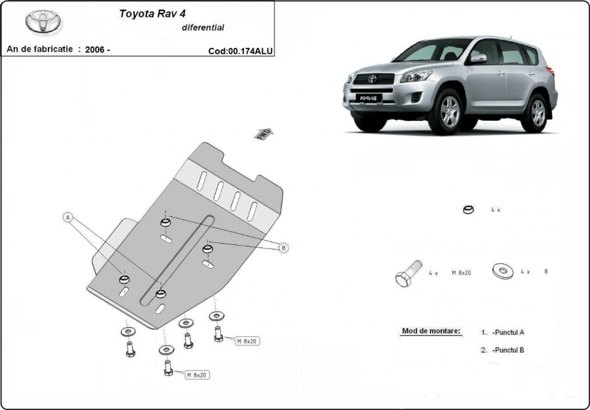 Voor de bescherming van: achterkant differentieel De motor beschermplaat is nieuw en past perfect bij alle versies van Toyota Rav4 geproduceerd tussen 2006 en 2013. Gemaakt van 3 mm dikke Aluminiumplaat. De schilden zijn van aluminium, maar de bevestigingssteunen zijn van staal. Schroeven, moeren, alle bevestigingsaccessoires zijn inbegrepen. Alle carterbeschermplaten zijn poedergecoat, om corrosie te vermijden. De buitenkant van de carterbeschermplaten heeft staalversterkingen, waardoor de weerstand tegen impact wordt verhoogd. |