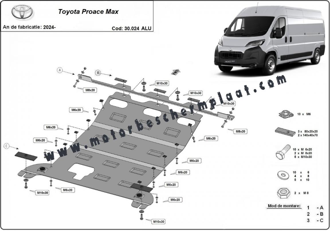Aluminium Motor Beschermplaat voor Toyota Proace Max (2024-2025)
