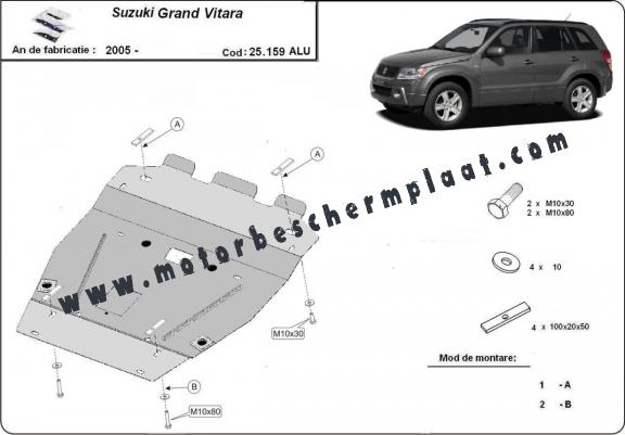 Voor de bescherming van: motor, radiator De motor beschermplaat is nieuw en past perfect bij alle versies van Suzuki Grand Vitara 2 geproduceerd tussen 2005 en 2019. Gemaakt van 3 mm dikke Aluminiumplaat. De schilden zijn van aluminium, maar de bevestigingssteunen zijn van staal. Schroeven, moeren, alle bevestigingsaccessoires zijn inbegrepen. Alle carterbeschermplaten zijn poedergecoat, om corrosie te vermijden. De buitenkant van de carterbeschermplaten heeft staalversterkingen, waardoor de weerstand tegen impact wordt verhoogd. |