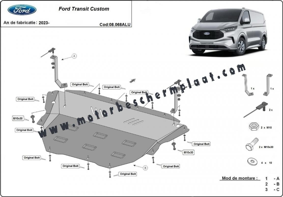 Aluminium Motor en Versnellingsbak Beschermplaat voor Ford Transit Custom (2023-2025)