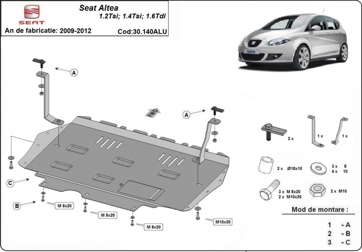 Voor de bescherming van: motor, versnellingsbak, radiator De motor beschermplaat is nieuw en past perfect bij de Seat Altea, met de volgende motor / aandrijfversies: 1.2Tsi, 1.4Tsi, 1.6Tdi - geproduceerd tussen 2009 en 2012. Gemaakt van 3 mm dikke Aluminiumplaat. De schilden zijn van aluminium, maar de bevestigingssteunen zijn van staal. Schroeven, moeren, alle bevestigingsaccessoires zijn inbegrepen. Alle carterbeschermplaten zijn poedergecoat, om corrosie te vermijden. De buitenkant van de carterbeschermplaten heeft staalversterkingen, waardoor de weerstand tegen impact wordt verhoogd. |