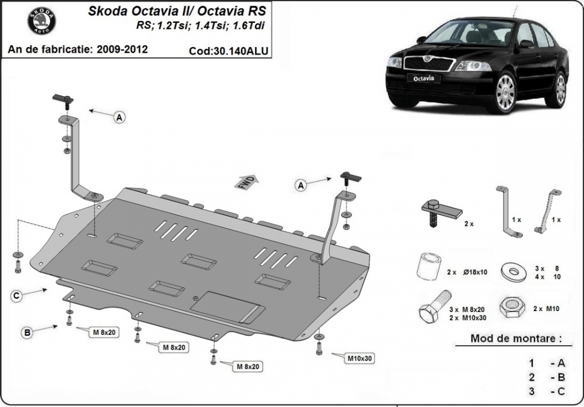 Voor de bescherming van: motor, versnellingsbak, radiator De motor beschermplaat is nieuw en past perfect bij de Skoda Octavia 2, met de volgende motor / aandrijfversies: 1.2Tsi, 1.4Tsi, 1.6Tdi - geproduceerd tussen 2009 en 2012. Gemaakt van 3 mm dikke Aluminiumplaat. De schilden zijn van aluminium, maar de bevestigingssteunen zijn van staal. Schroeven, moeren, alle bevestigingsaccessoires zijn inbegrepen. Alle carterbeschermplaten zijn poedergecoat, om corrosie te vermijden. De buitenkant van de carterbeschermplaten heeft staalversterkingen, waardoor de weerstand tegen impact wordt verhoogd. |