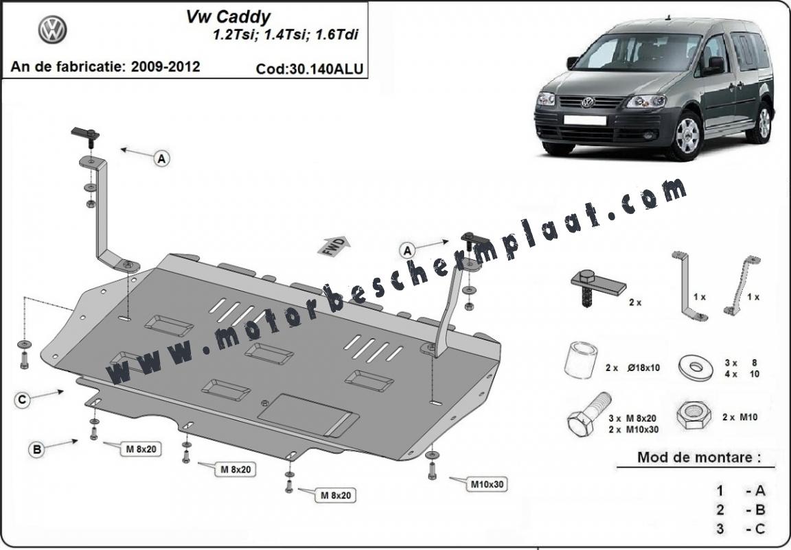 Aluminium Motor, Versnellingsbak en Radiator Beschermplaat voor Volkswagen Caddy (2009-2019)