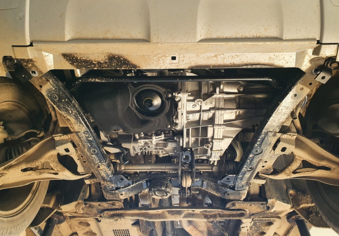 | Het monteren van de carterbeschermplaat eist geen wijzigingen aan de voertuigstructuur. |