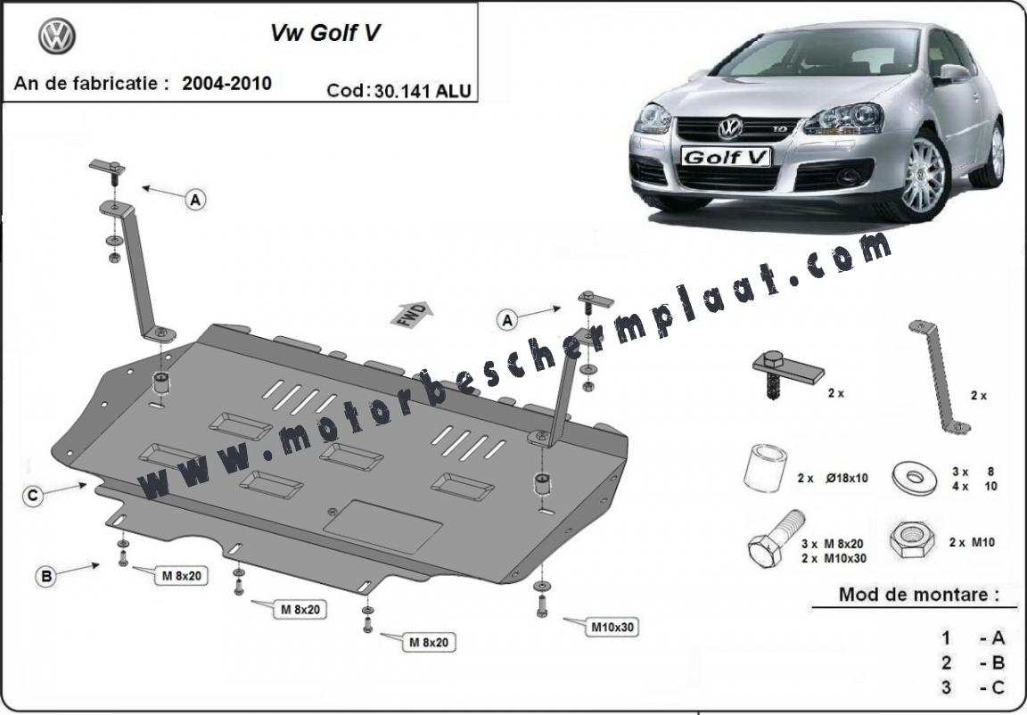 Aluminium Motor, Versnellingsbak en Radiator Beschermplaat voor Vw Golf mk5 (2004-2010)