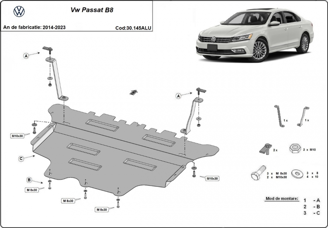 Voor de bescherming van: motor, versnellingsbak, radiator, voorbumper De motor beschermplaat is nieuw en past perfect bij alle versies van VW Passat B8 geproduceerd tussen 2014 en 2023. Gemaakt van 3 mm dikke Aluminiumplaat. De schilden zijn van aluminium, maar de bevestigingssteunen zijn van staal. Schroeven, moeren, alle bevestigingsaccessoires zijn inbegrepen. Alle carterbeschermplaten zijn poedergecoat, om corrosie te vermijden. De buitenkant van de carterbeschermplaten heeft staalversterkingen, waardoor de weerstand tegen impact wordt verhoogd. |