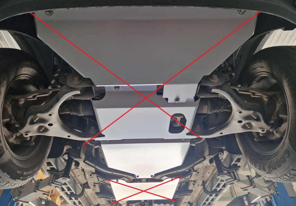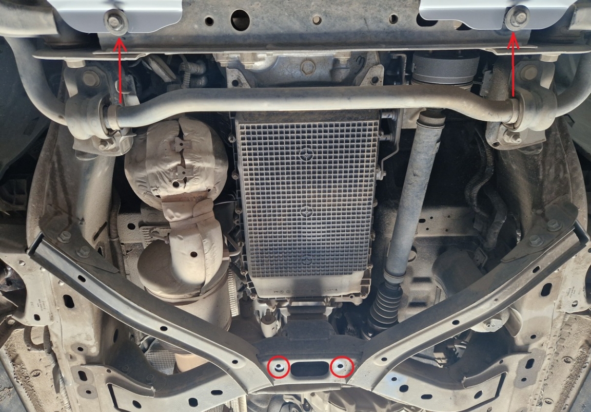 | Het monteren van de carterbeschermplaat eist geen wijzigingen aan de voertuigstructuur. |