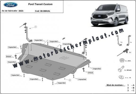 Beschermplaat voor de motor en versnellingsbak voor Ford-voertuigen, Ford Transit Custom-model, voor verschillende jaren van fabricage. Motor beschermplaat, 2-3 mm dik, eenvoudig te monteren, tegen betaalbare prijzen.