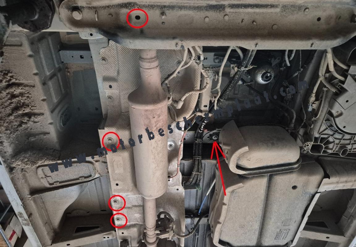 | Het monteren van de carterbeschermplaat eist geen wijzigingen aan de voertuigstructuur. |
