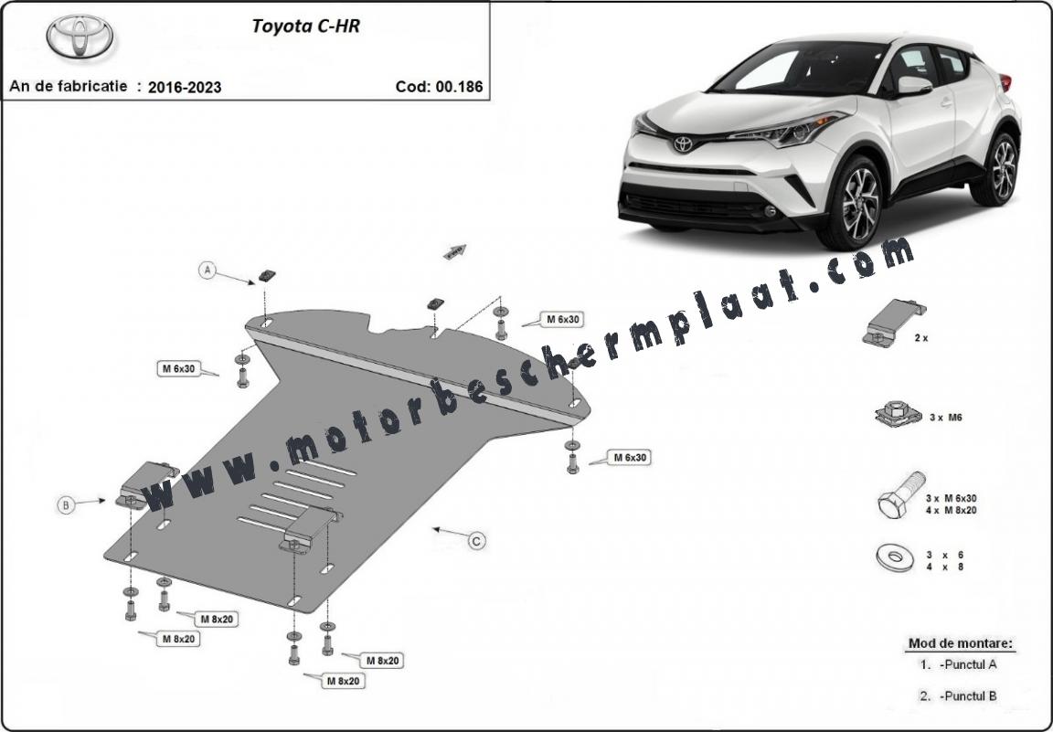 Voor de bescherming van: Katalysator De motor beschermplaat is nieuw en past perfect bij alle versies van Toyota C-HR geproduceerd tussen 2016 en 2023. Gemaakt van 2 mm dikke Staalplaat. Schroeven, moeren, alle bevestigingsaccessoires zijn inbegrepen. Alle carterbeschermplaten zijn poedergecoat, om corrosie te vermijden. De buitenkant van de carterbeschermplaten heeft staalversterkingen, waardoor de weerstand tegen impact wordt verhoogd. |