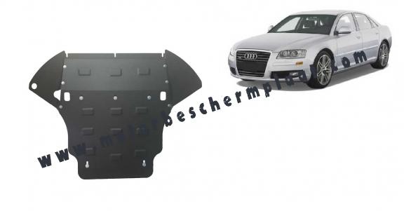 Beschermplaat voor de motor en versnellingsbak, bestemd voor Audi-voertuigen. Het wordt gemonteerd zonder enige aanpassingen aan het voertuig, geleverd samen met alle vereiste montageaccessoires. Het heeft geen invloed op de garantie van het voertuig.