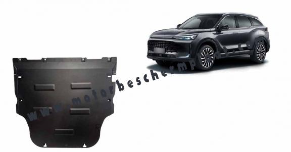 Beschermplaat voor de motor en versnellingsbak, bestemd voor Baic-voertuigen. Het wordt gemonteerd zonder enige aanpassingen aan het voertuig, geleverd samen met alle vereiste montageaccessoires. Het heeft geen invloed op de garantie van het voertuig.