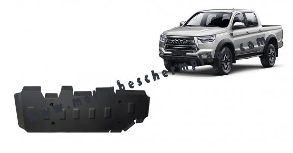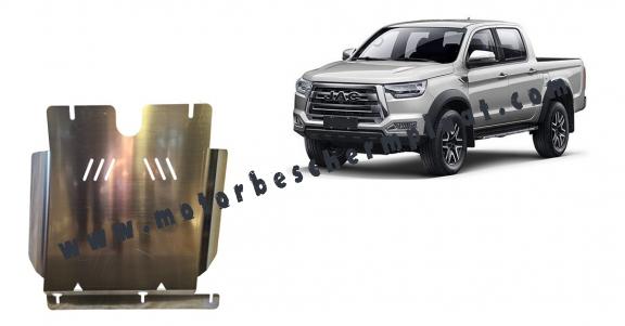 Beschermplaat voor de motor en versnellingsbak, bestemd voor Jac-voertuigen. Het wordt gemonteerd zonder enige aanpassingen aan het voertuig, geleverd samen met alle vereiste montageaccessoires. Het heeft geen invloed op de garantie van het voertuig.