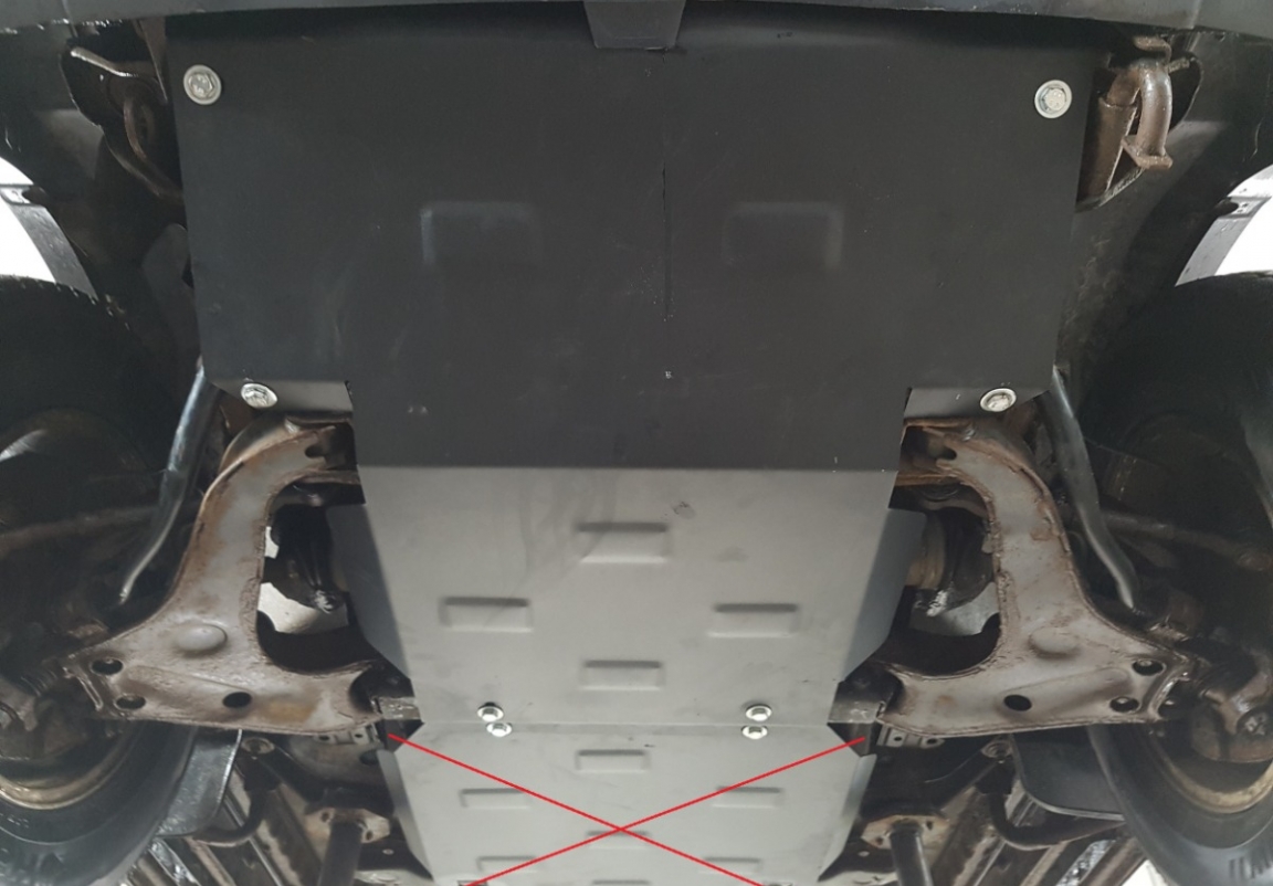 | Het monteren van de carterbeschermplaat eist geen wijzigingen aan de voertuigstructuur. |