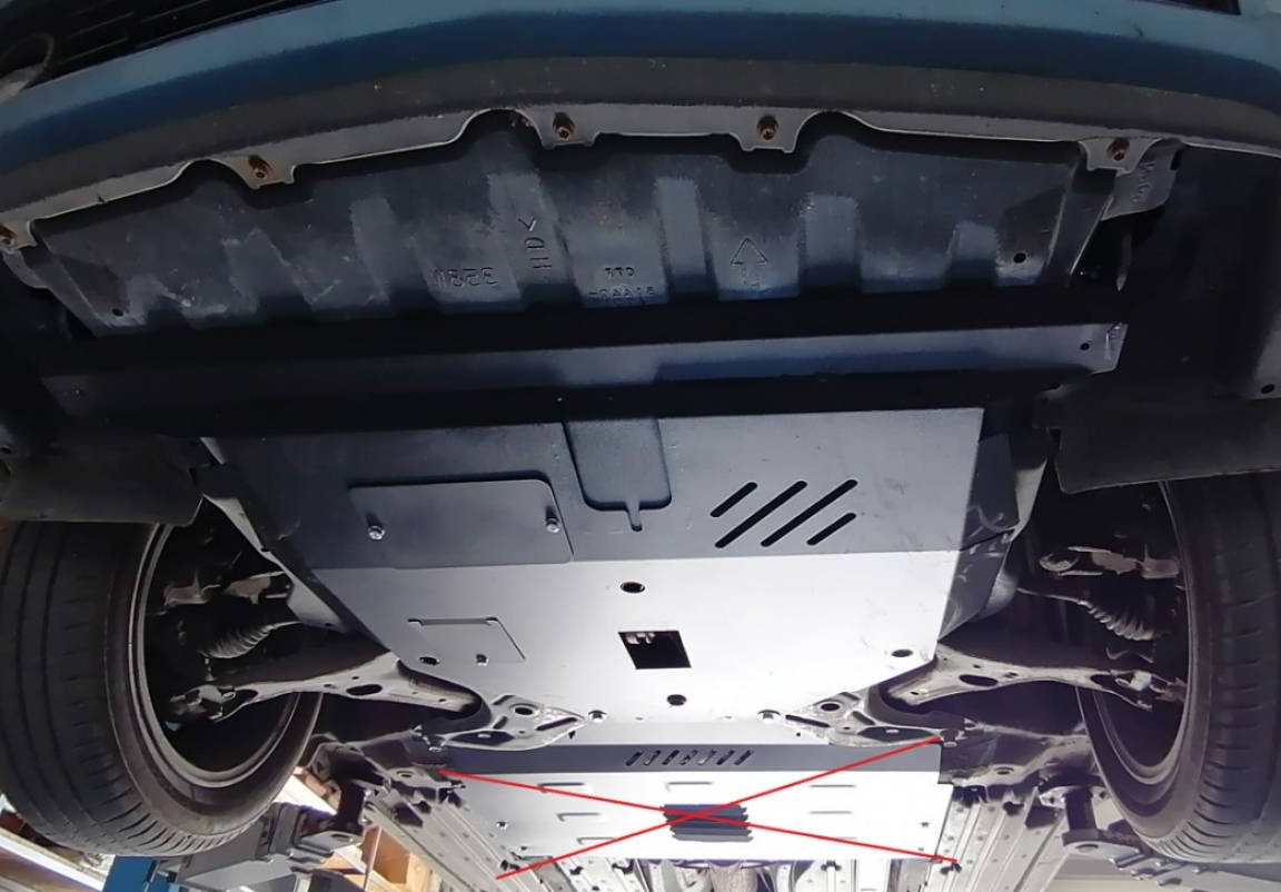 | Het monteren van de carterbeschermplaat eist geen wijzigingen aan de voertuigstructuur. |