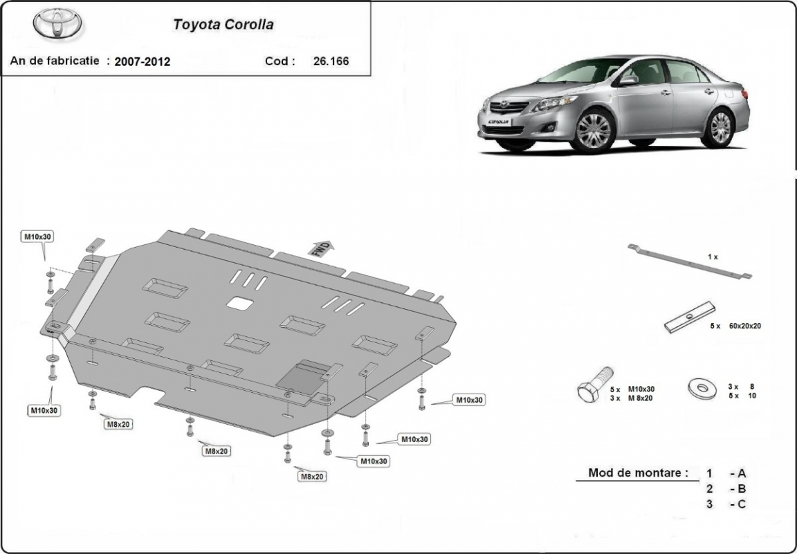 Voor de bescherming van: motor De motor beschermplaat is nieuw en past perfect bij alle versies van Toyota Corolla geproduceerd tussen 2007 en 2012. Het heeft een opening voor de oliecarter, dus hoeft het niet verwijderd worden bij olieverversing. Gemaakt van 2 mm dikke Staalplaat. Schroeven, moeren, alle bevestigingsaccessoires zijn inbegrepen. Alle carterbeschermplaten zijn poedergecoat, om corrosie te vermijden. De buitenkant van de carterbeschermplaten heeft staalversterkingen, waardoor de weerstand tegen impact wordt verhoogd. |