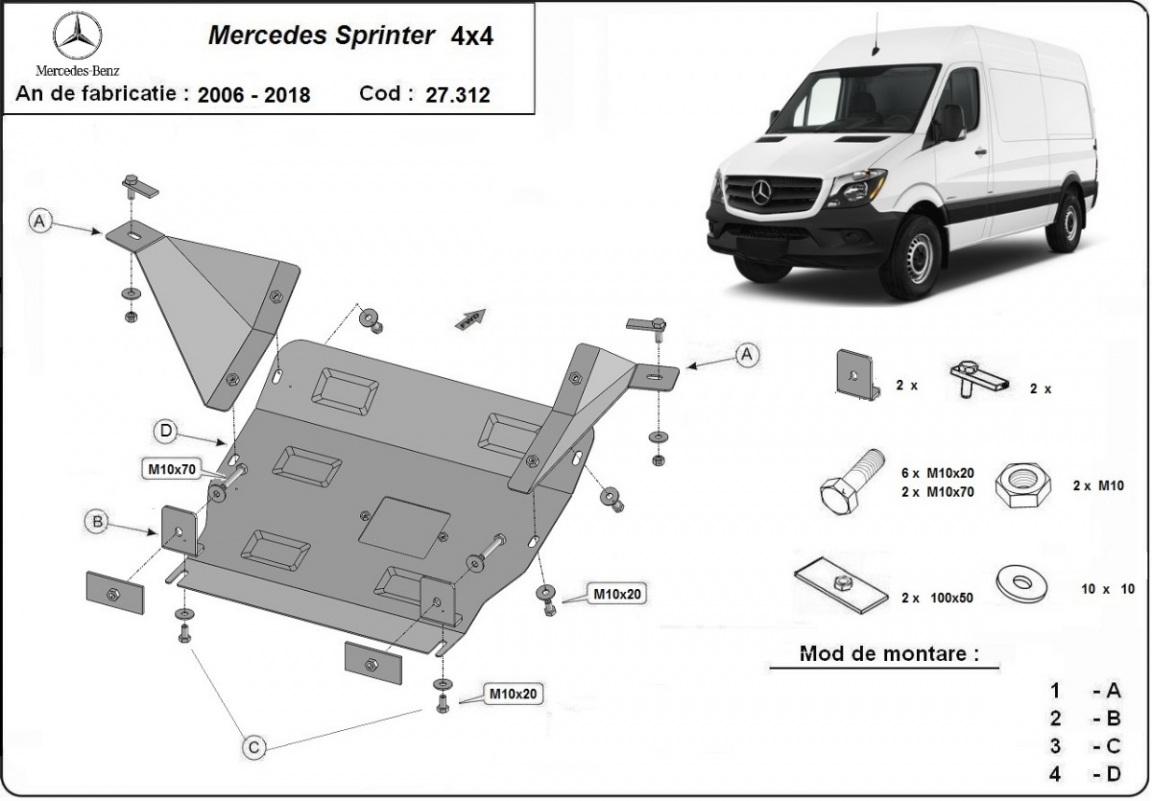 Motor Beschermplaat voor Mercedes Sprinter 906 4x4 (2006-2018)