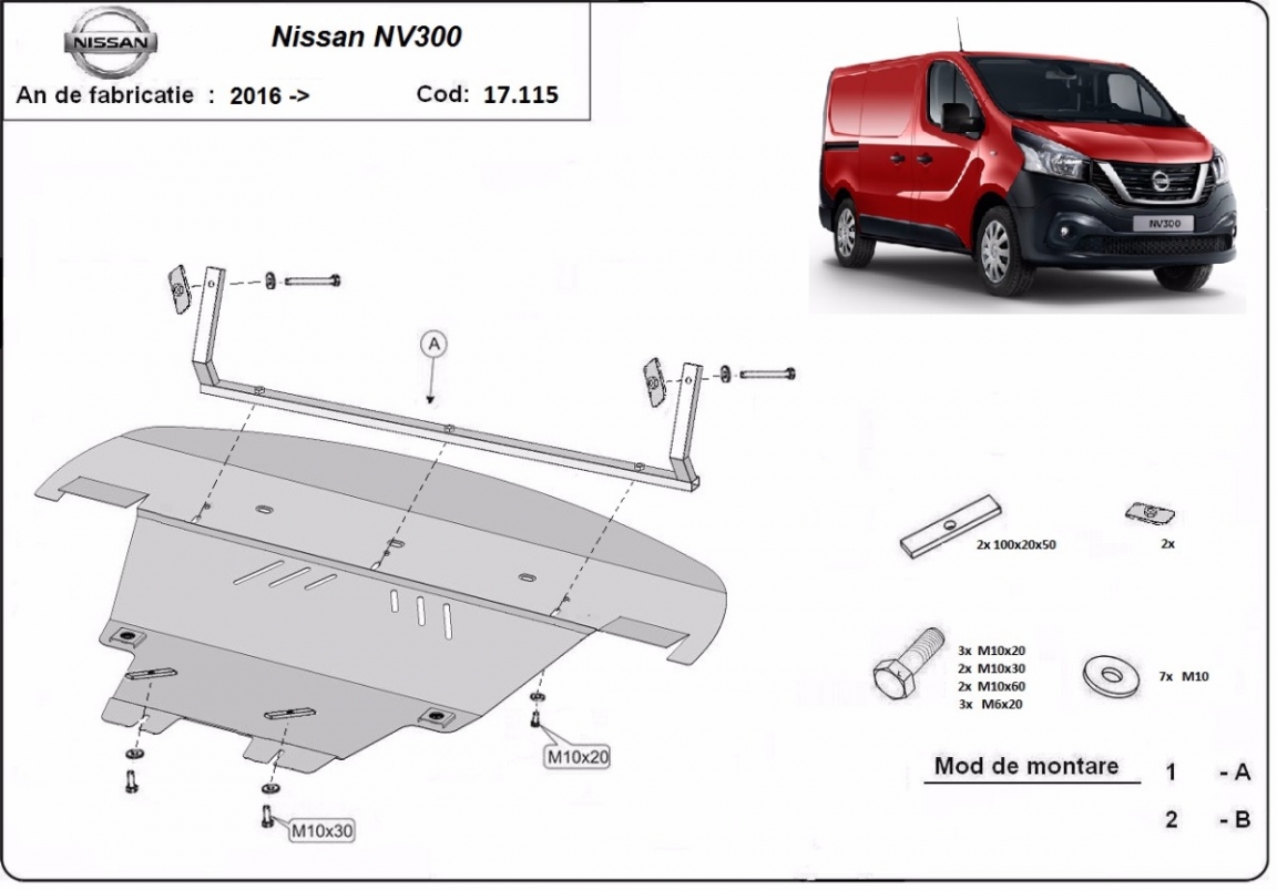 Voor de bescherming van: motor, versnellingsbak, radiator, voorbumper De motor beschermplaat is nieuw en past perfect bij alle versies van Nissan NV300 geproduceerd tussen 2014 en 2021. Gemaakt van 2 mm dikke Staalplaat. Schroeven, moeren, alle bevestigingsaccessoires zijn inbegrepen. Alle carterbeschermplaten zijn poedergecoat, om corrosie te vermijden. De buitenkant van de carterbeschermplaten heeft staalversterkingen, waardoor de weerstand tegen impact wordt verhoogd. |