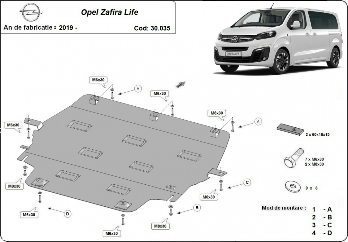 Motor Beschermplaat voor Opel Zafira Life (2019-2026)