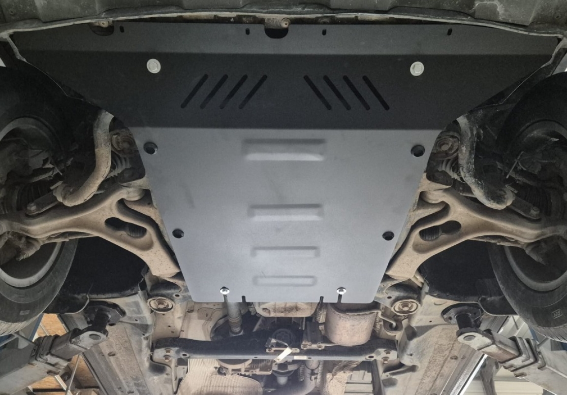 | Ieder voertuig heeft fabrieksgemaakte schroefgaten voor de carterbeschermplaat, voor een gemakkelijke montage. |