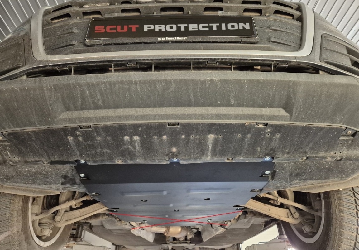 | Het monteren van de carterbeschermplaat eist geen wijzigingen aan de voertuigstructuur. |