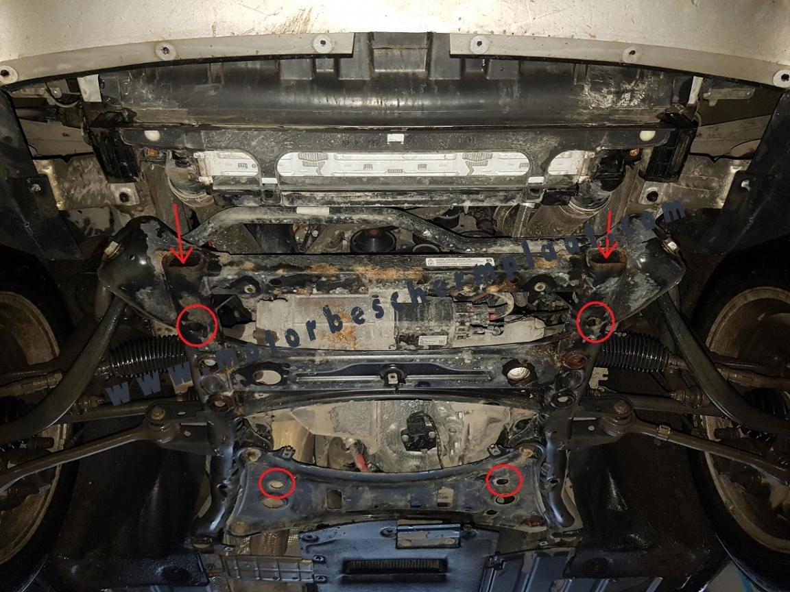 | Het monteren van de carterbeschermplaat eist geen wijzigingen aan de voertuigstructuur. |