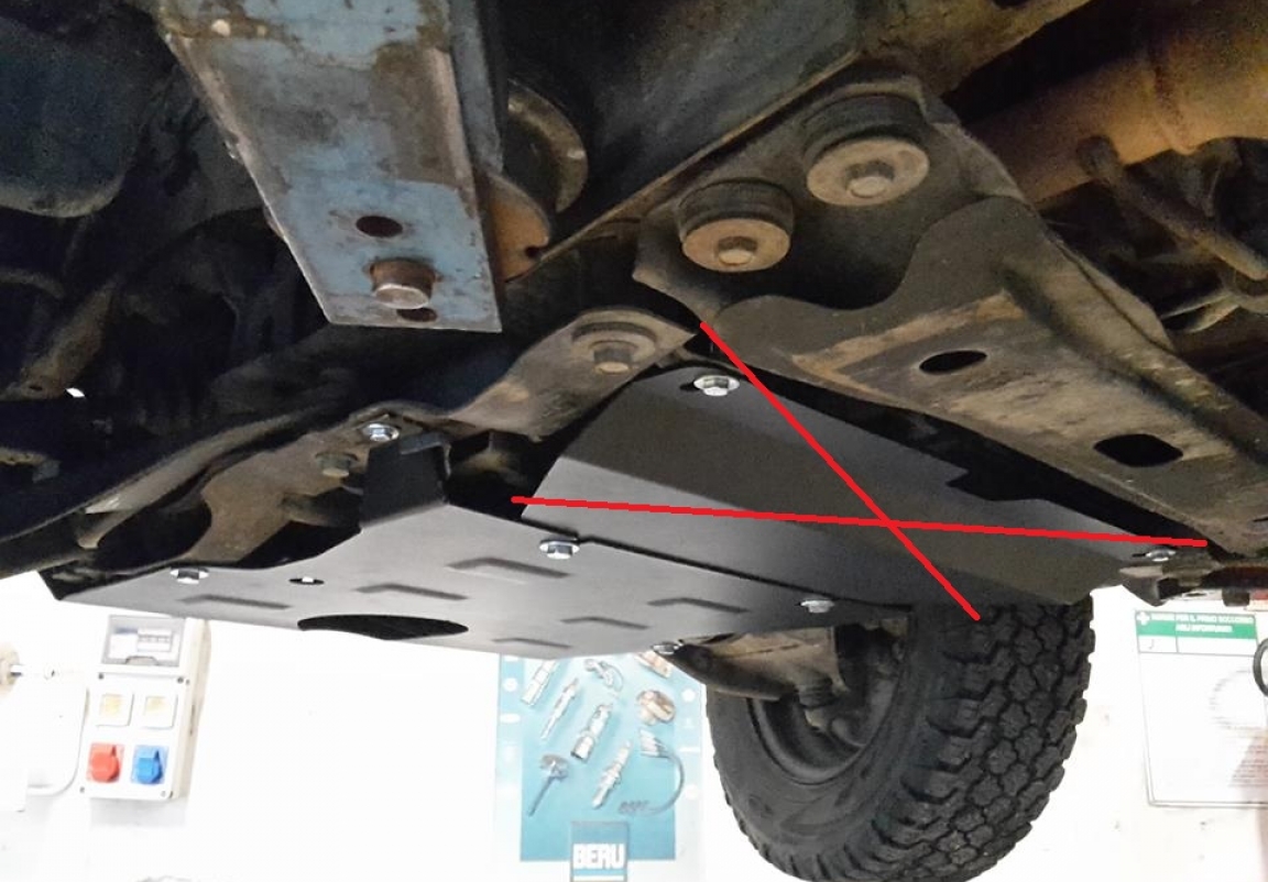 | Het monteren van de carterbeschermplaat eist geen wijzigingen aan de voertuigstructuur. |