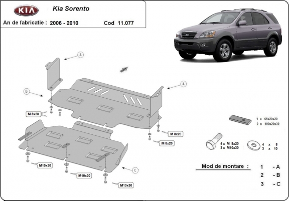 Voor de bescherming van: motor, radiator De motor beschermplaat is nieuw en past perfect bij alle versies van Kia Sorento geproduceerd tussen 2006 en 2009. Gemaakt van 2 mm dikke Staalplaat. Schroeven, moeren, alle bevestigingsaccessoires zijn inbegrepen. Alle carterbeschermplaten zijn poedergecoat, om corrosie te vermijden. De buitenkant van de carterbeschermplaten heeft staalversterkingen, waardoor de weerstand tegen impact wordt verhoogd. |