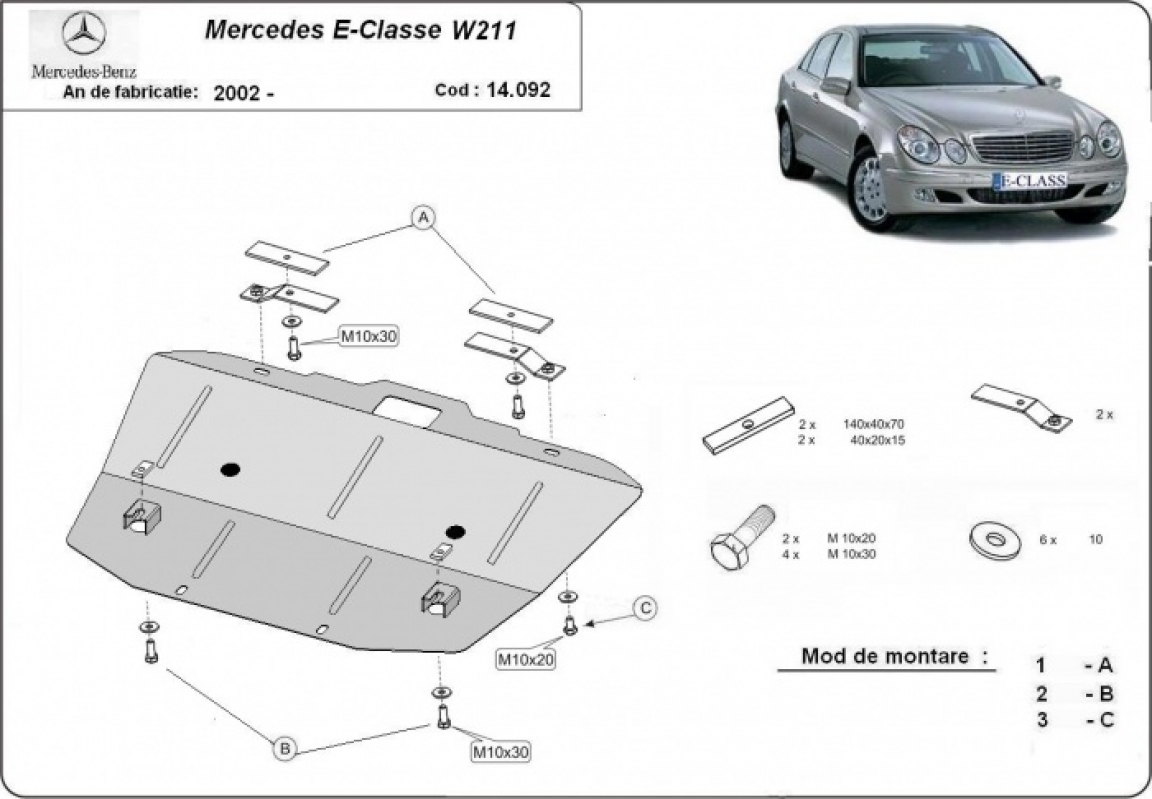 Motor en Radiator Beschermplaat voor Mercedes E-Classe W211 (2002-2008)