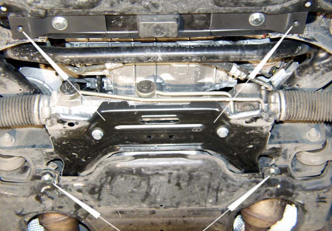 | Het monteren van de carterbeschermplaat eist geen wijzigingen aan de voertuigstructuur. |