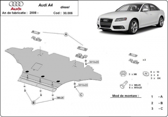 Motor en Radiator Beschermplaat voor Audi A4 B8 All Road, diesel (2008-2014)