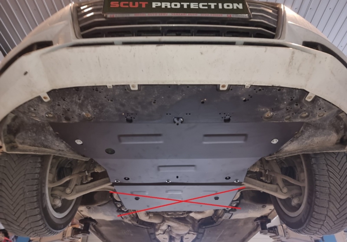 | Het monteren van de carterbeschermplaat eist geen wijzigingen aan de voertuigstructuur. |