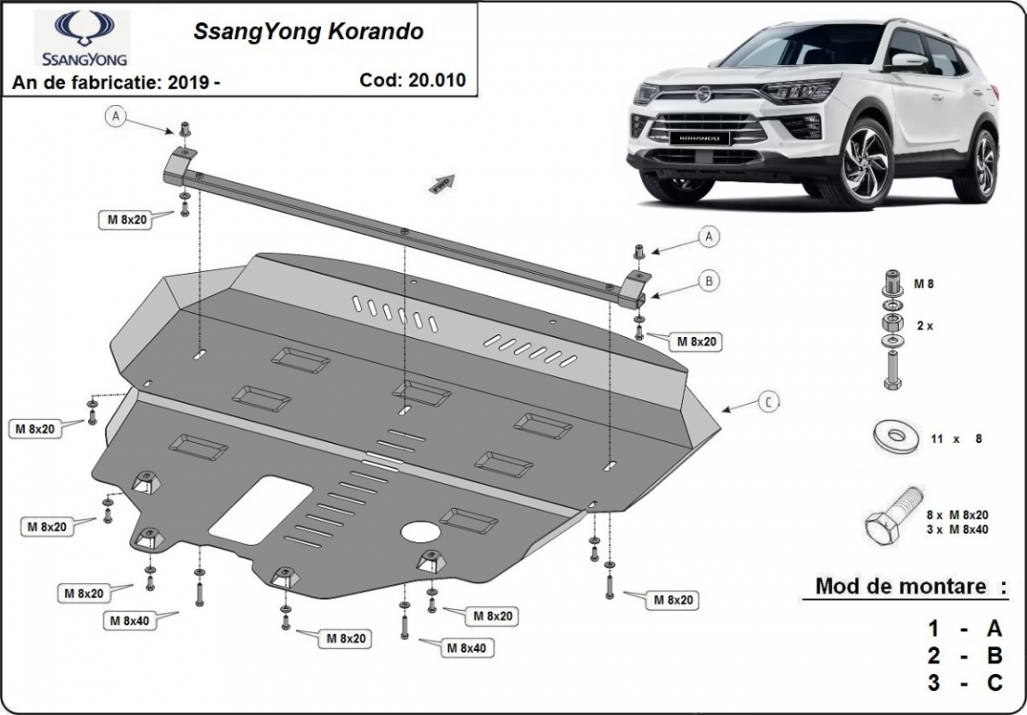 Motor en Radiator Beschermplaat voor SsangYong Korando (2019-2026)