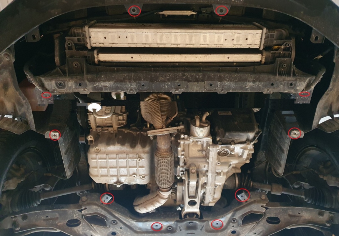 | Het monteren van de carterbeschermplaat eist geen wijzigingen aan de voertuigstructuur. |