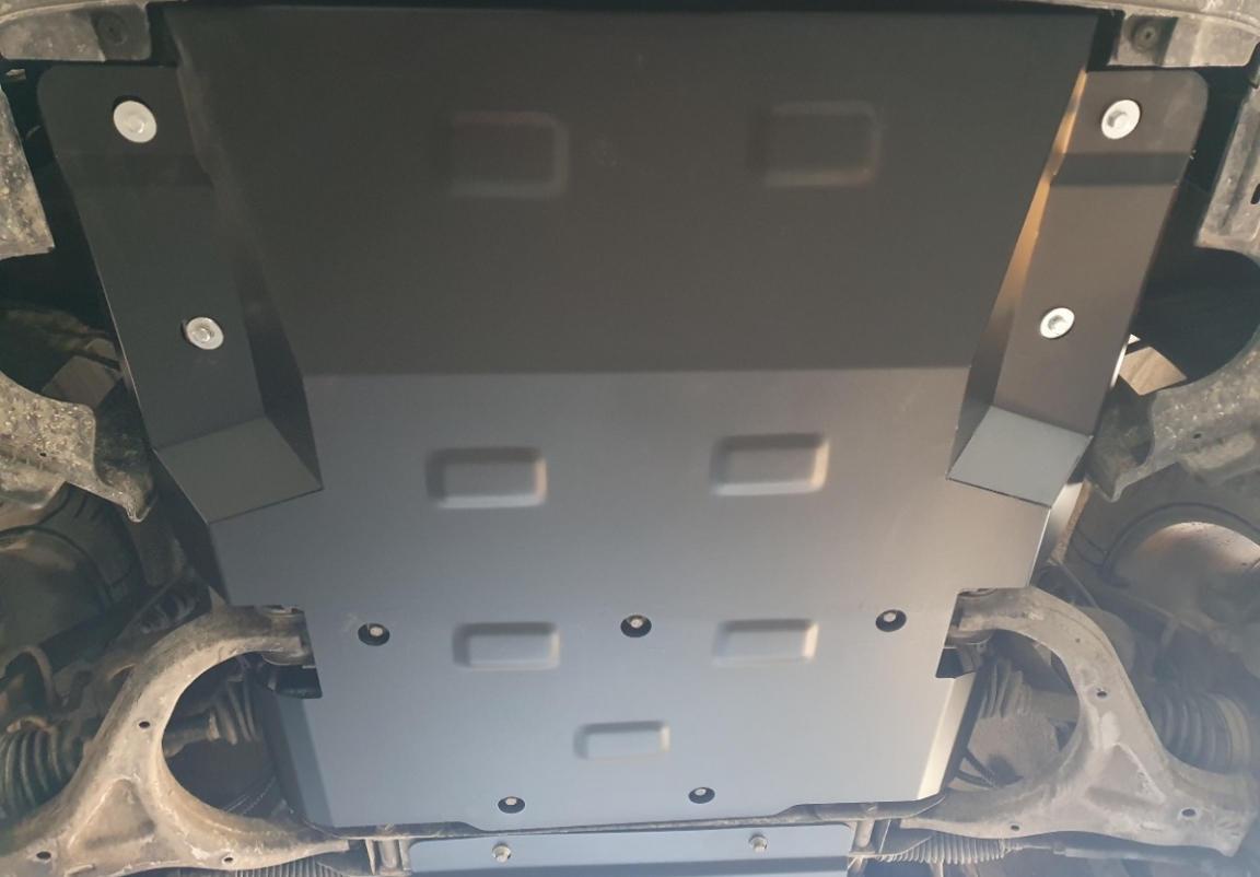 | Ieder voertuig heeft fabrieksgemaakte schroefgaten voor de carterbeschermplaat, voor een gemakkelijke montage. |
