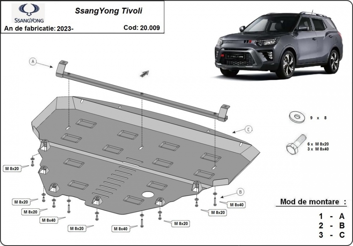 Motor en Radiator Beschermplaat voor SsangYong Tivoli (2023-2026)
