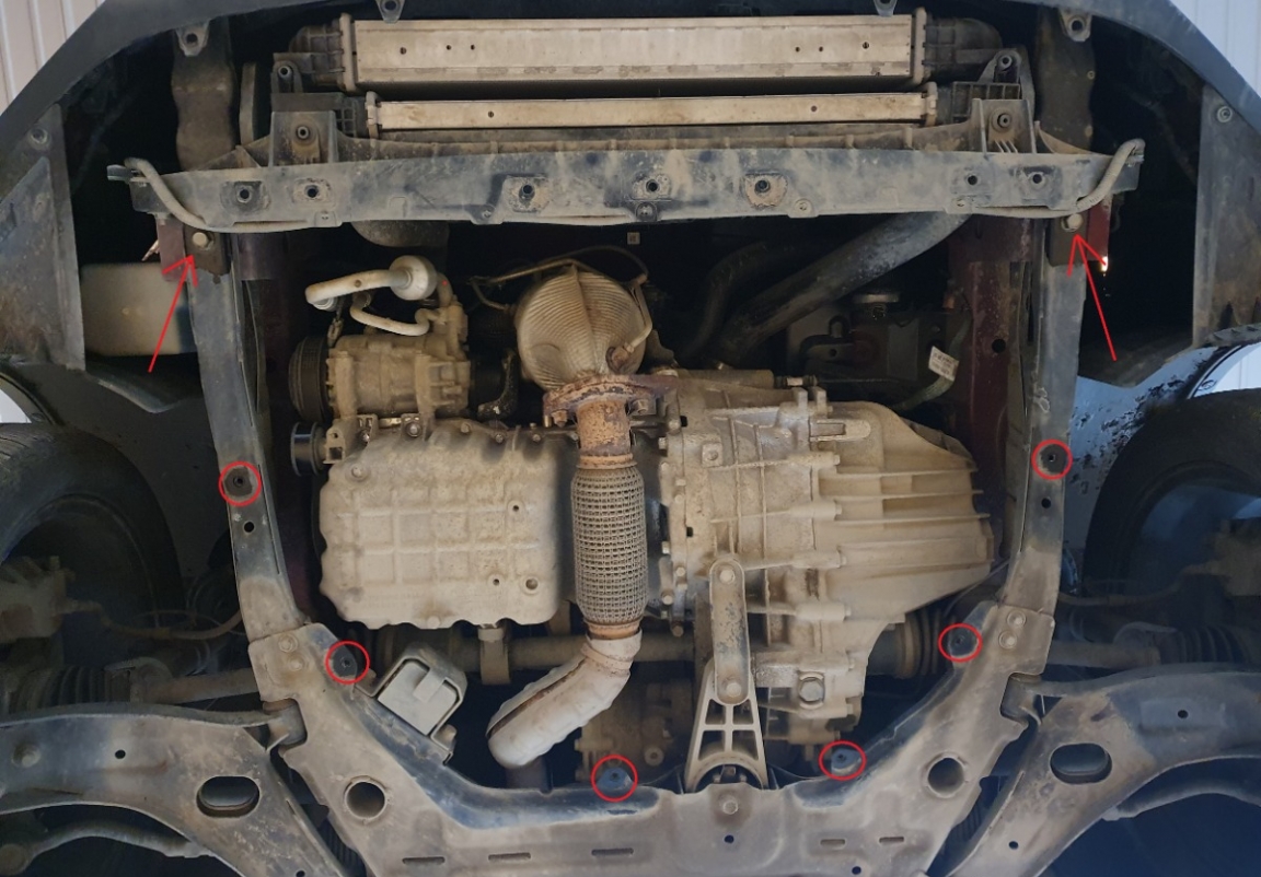 | Het monteren van de carterbeschermplaat eist geen wijzigingen aan de voertuigstructuur. |