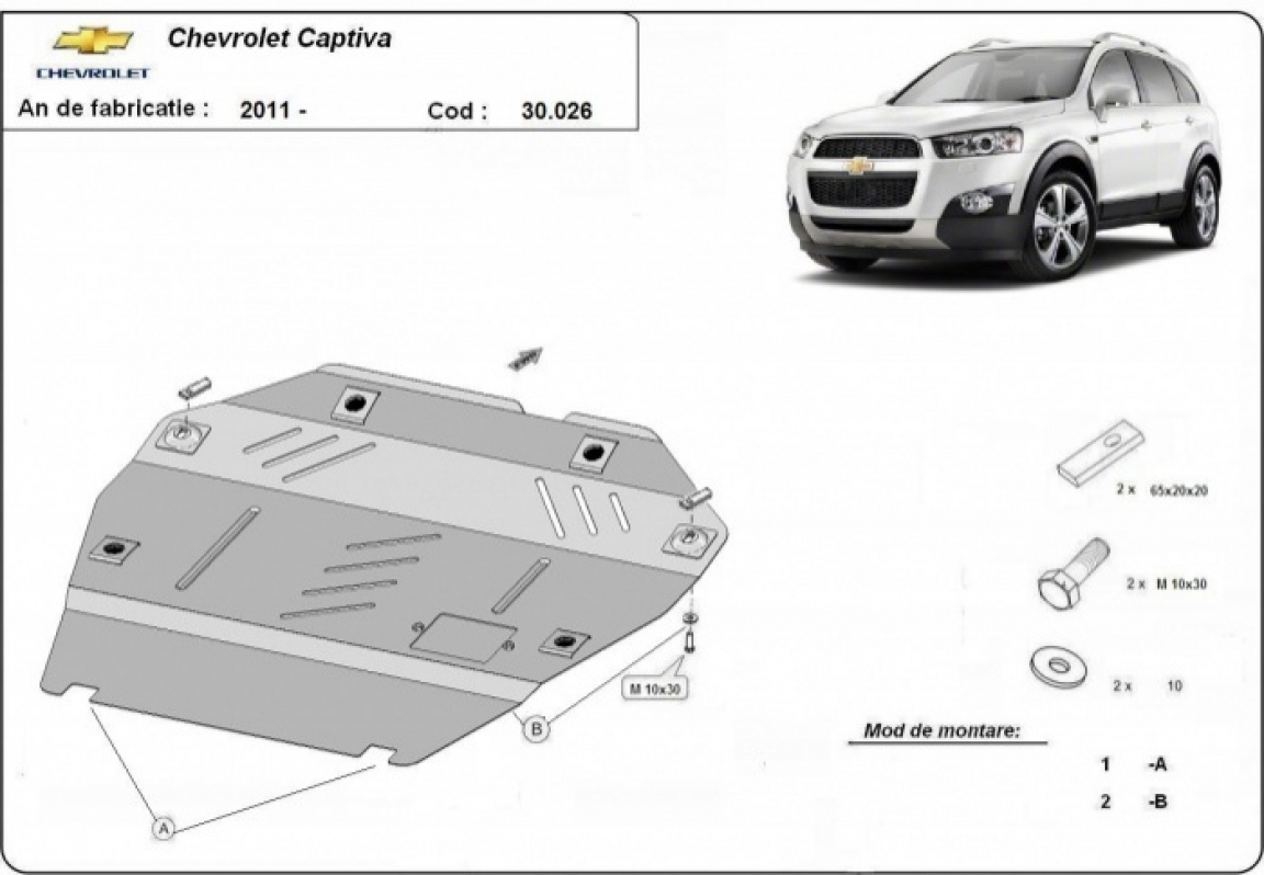 Voor de bescherming van: motor, versnellingsbak De motor beschermplaat is nieuw en past perfect bij alle versies van Chevrolet Captiva geproduceerd tussen 2010 en 2018. Het heeft een opening voor de oliecarter, dus hoeft het niet verwijderd worden bij olieverversing. Gemaakt van 2 mm dikke Staalplaat. Schroeven, moeren, alle bevestigingsaccessoires zijn inbegrepen. Alle carterbeschermplaten zijn poedergecoat, om corrosie te vermijden. De buitenkant van de carterbeschermplaten heeft staalversterkingen, waardoor de weerstand tegen impact wordt verhoogd. |
