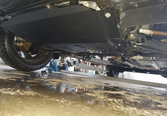 | Ieder voertuig heeft fabrieksgemaakte schroefgaten voor de carterbeschermplaat, voor een gemakkelijke montage. |
