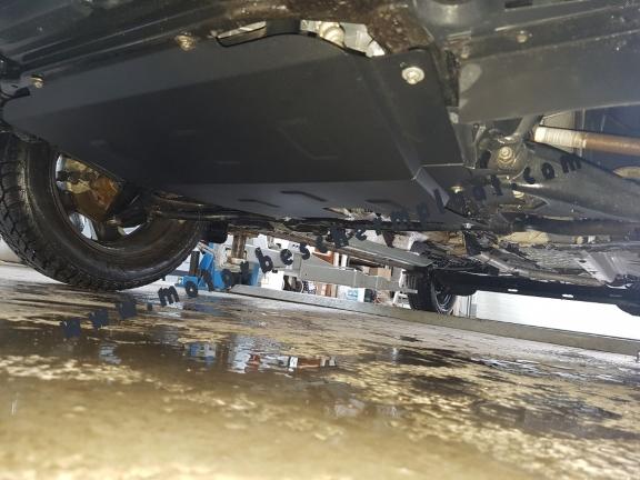 | Ieder voertuig heeft fabrieksgemaakte schroefgaten voor de carterbeschermplaat, voor een gemakkelijke montage. |