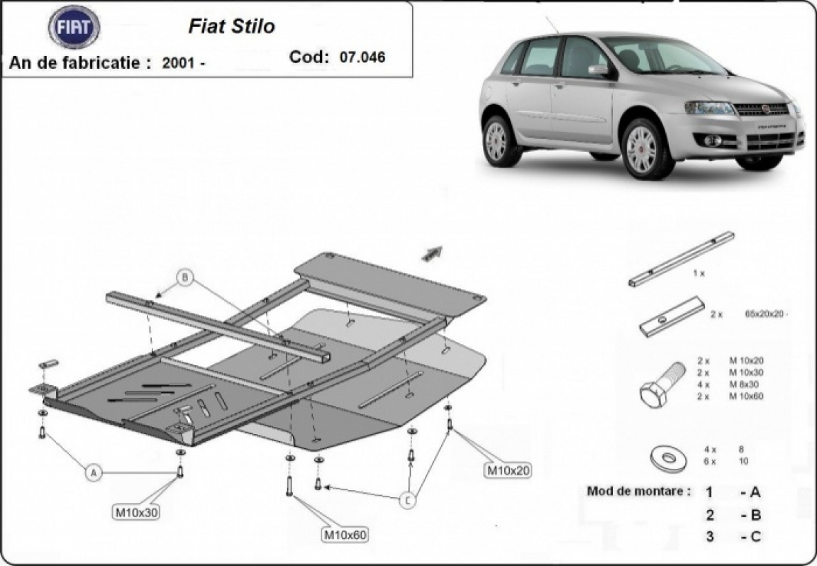 Motor en Versnellingsbak Beschermplaat voor Fiat Stilo (2001-2010)