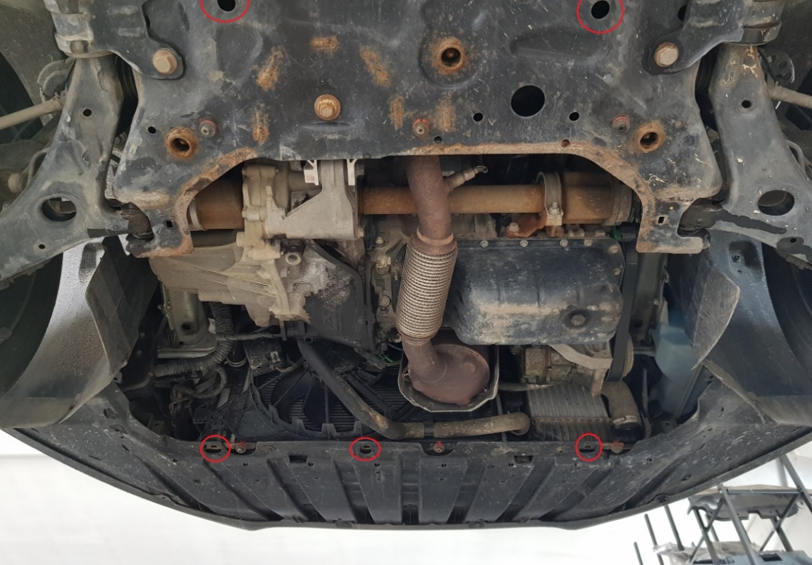 | Het monteren van de carterbeschermplaat eist geen wijzigingen aan de voertuigstructuur. |