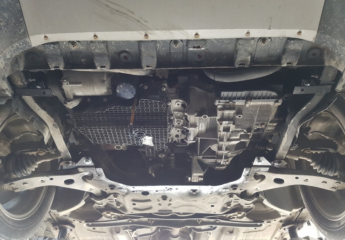 | Het monteren van de carterbeschermplaat eist geen wijzigingen aan de voertuigstructuur. |