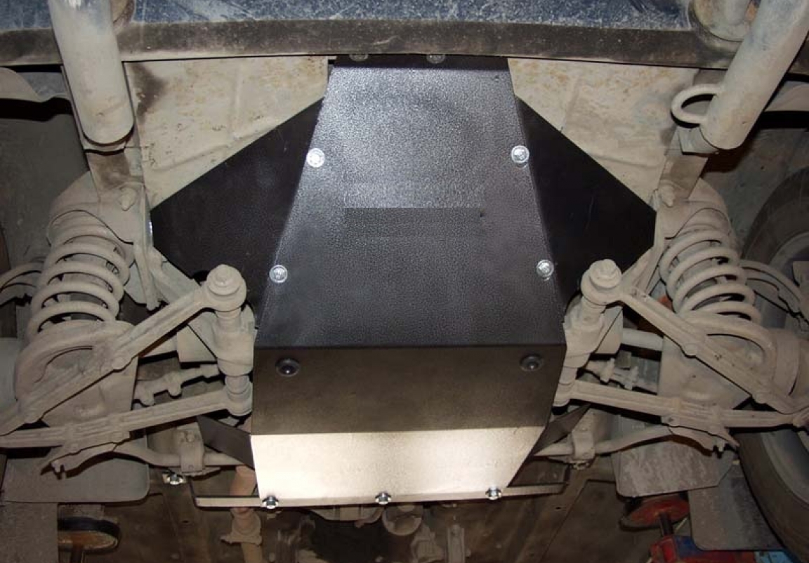| Ieder voertuig heeft fabrieksgemaakte schroefgaten voor de carterbeschermplaat, voor een gemakkelijke montage. |