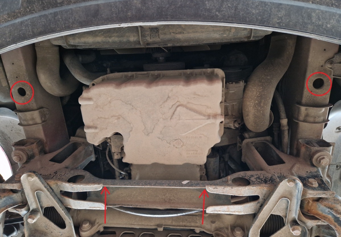 | Het monteren van de carterbeschermplaat eist geen wijzigingen aan de voertuigstructuur. |
