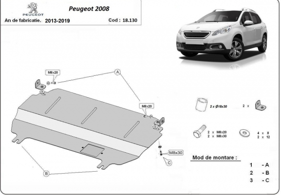Motor en Versnellingsbak Beschermplaat voor Peugeot 2008 (2013-2019)