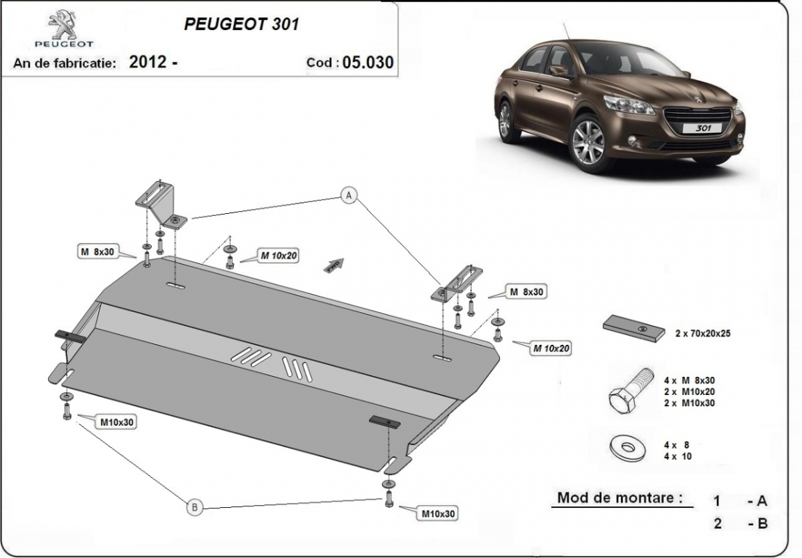 Motor en Versnellingsbak Beschermplaat voor Peugeot 301 (2012-2026)